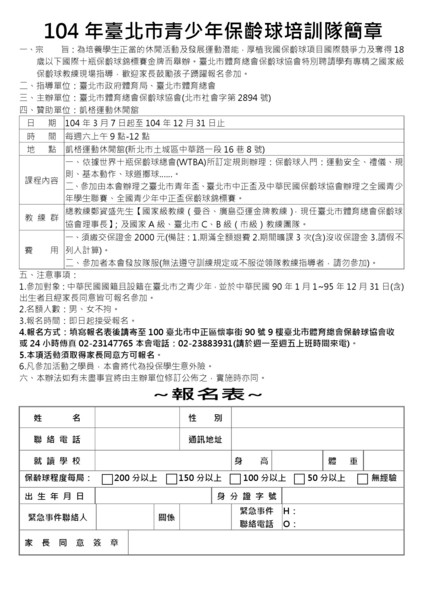 104全國運動會臺北市代表隊選拔賽已報名名單如下~