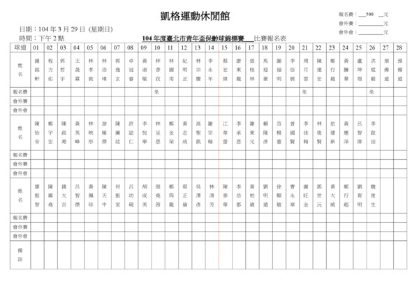 104年臺北市青年盃保齡球錦標賽~每場候補名單!請報名選手們要注意喔!