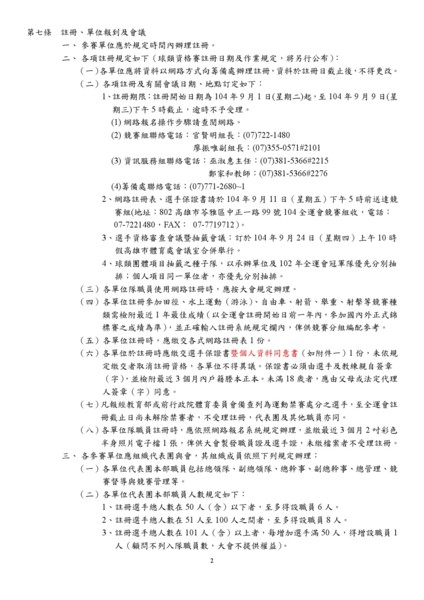 104全國運動會競賽規程出爐~相關網站http://sport104.kh.edu.tw/