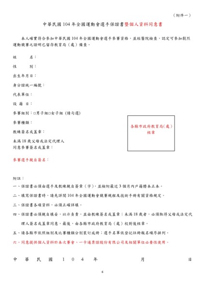 104全國運動會臺北市代表隊選拔賽已報名名單如下~