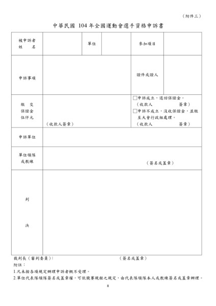 104全國運動會臺北市代表隊選拔賽~每場落油與報到時間!請參賽選手要注意喔!