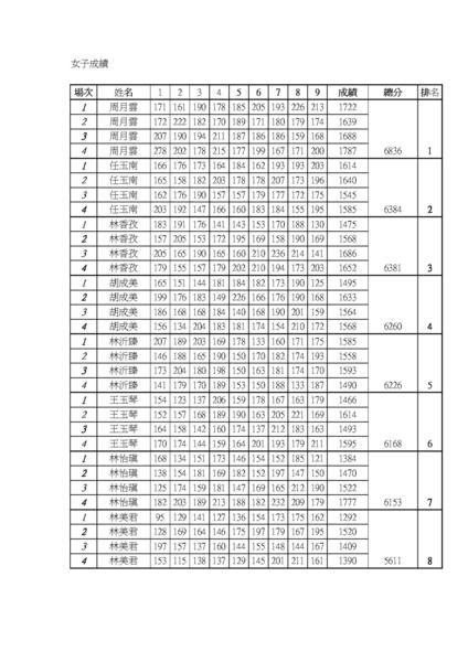 102全國運動會-臺北市保齡球代表隊選拔成績~女子組