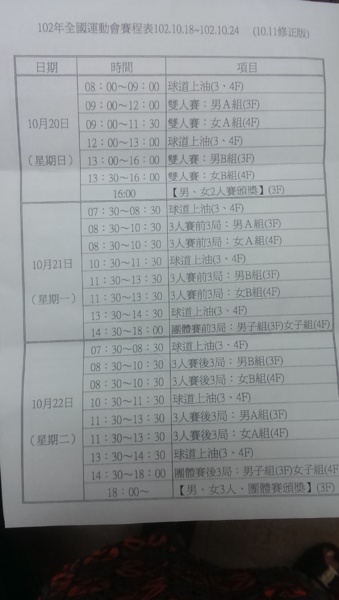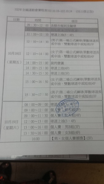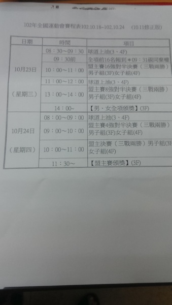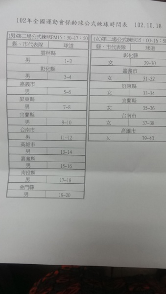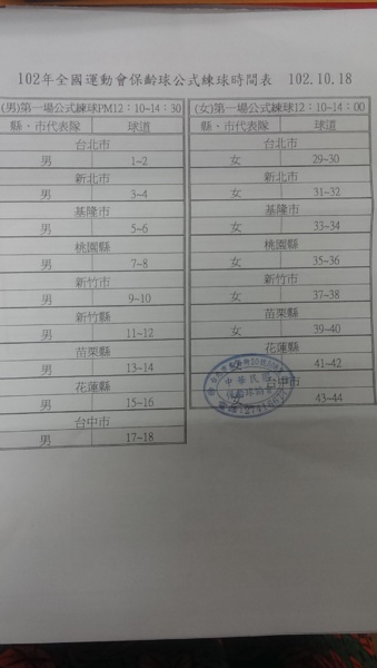 104全國運動會臺北市代表隊選拔賽~每場落油與報到時間!請參賽選手要注意喔!