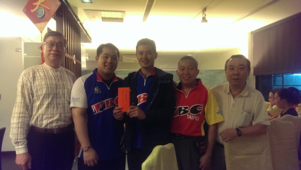 本會鄭理事長及副理事長們頒發榮獲102全運會雙人銅牌的洪焜毅與鄭行超獎勵金一萬元!!加油加油!!