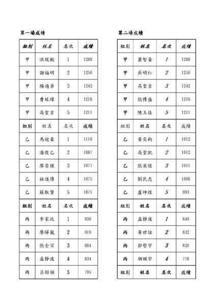 102臺北市中正盃成績總表~