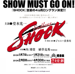 同舞台は00年初演で、毎年、帝国劇場で上演されてきた。東日本大震災が起きた3月11日は公演中だったが、余震などから同31日までの28公演をすべて中止した。製作の東宝は「例年通りの日程だとチケット入手が大変で、今回来られなかった方に申し訳がない」として、例年よりも1カ月公演数を拡大。同所で3カ月連続公演を行う。