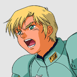 此回來提提【巴尼】:他是十九歲、吉翁軍的【伍長】。偶然的機會裡、加入了【獨眼巨人隊】。在NT-1的強大威力下,僅殘存他一人。而所剩的是殘破的【薩克】與唯一的武器【電熱斧】。 |