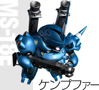 此作【肯普法】是德語【古代武士】的意思,為吉翁的新型機。與NT-1有極激烈的近身肉搏,可說難分軒輊。將戰力的水平、調到合理的狀態;回歸兵器、而非戰場上無堅不摧的神器。將剛彈由【神格化】拉下,自此開始它是可被擊毀、有時會處於劣勢的【強化武器】罷了。