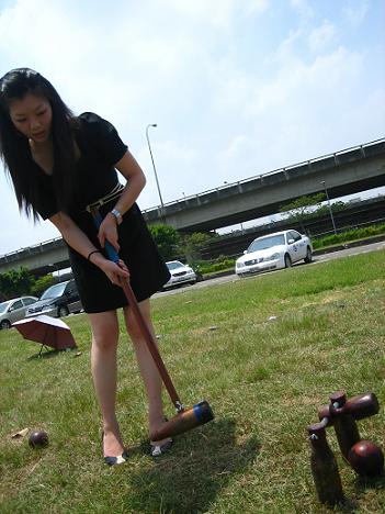 華服打木球,