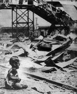 圖片名稱:上海火車南站廢墟中的男孩