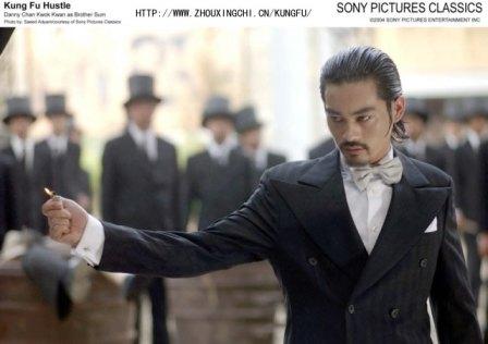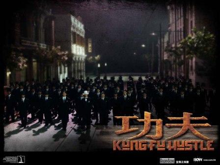 首先、談談電影的通俗片頭手法。電影開始、警局剛剛囂張走出的【鱷魚幫老大】還有她的妻子一行人,就碰到了千軍萬馬氣勢的【斧頭幫】;也拉開功夫全片的序幕。有人曾這麼說:【電影開頭的三分鐘,決定電影的好壞。】西片中尤其如此:絢爛的視覺效果,或是巨星的卡司客串。皆為吸引觀眾目光,同時擔任開胃菜的重任。本片整齊劃一的陣容,以及【搭、搭、搭】的腳步,像極【胡適先生】翻譯的小說【最後一課】,那普魯士軍隊的鐵蹄。復以搖頭晃腦的舞蹈動作,更在不搭調中增加些詭異的氣氛。可說是極好的開場。
