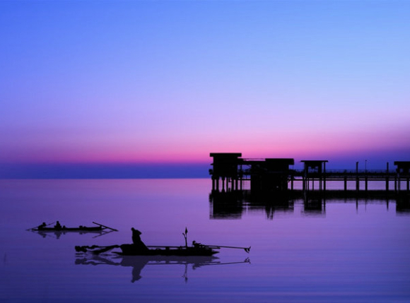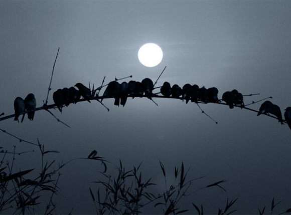 月上稍頭,鳥兒排排站,互相依偎取暖,牠門沒有家嗎?光與色協調,生動自然的佳作,令人驚嘆大自然的巧妙。