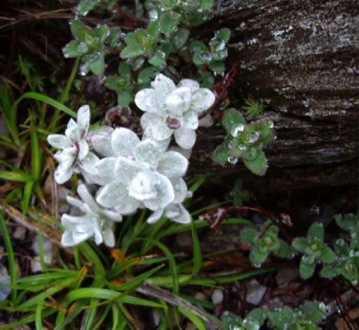 第一次在強風大雨中,站在三千多公尺海拔的高山上,雨衣被風掀得濕了鞋褲,雨傘也剎時開了花,冒著相機被淋壞的風險,搶拍了幾個霧霧的鏡頭,一路還有羽色美麗的小鳥覓食著,解說老師說那是因為連日下雨,小鳥實在餓壞了,才會冒著羽毛被淋濕會凍傷的生命危險,出來覓食。原來高山的動物,為了吃一頓飯,和人類一樣,也要為生存奮鬥的。