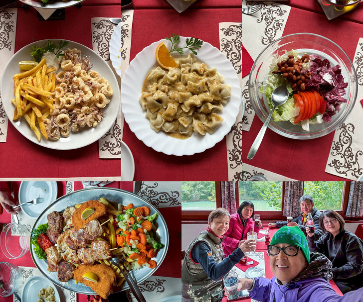 回到民宿吃過早餐稍作休息,今天還有一個預定的行程Waterfall Kozjak瀑布(約90分鐘車程),出發後靠著Google Map 找到評價還不錯的午餐餐廳,打算用餐過後前往Waterfall Kozjak瀑布,斯洛維尼亞外食算是CP高的,有人不小心點一個幾人份的大肉盤,根本就吃不完,這樣一桌菜加飲料70幾歐不算太貴。