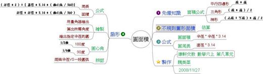 扇形的面積可以用(幾分之幾的圓)做為表示。扇形的周長除了(幾分之幾的圓),還要加上兩個邊長,才是完整的扇形周長,這也是學生最容易混淆的地方,盡量用圖形的操作說明以增加學生的理解。
