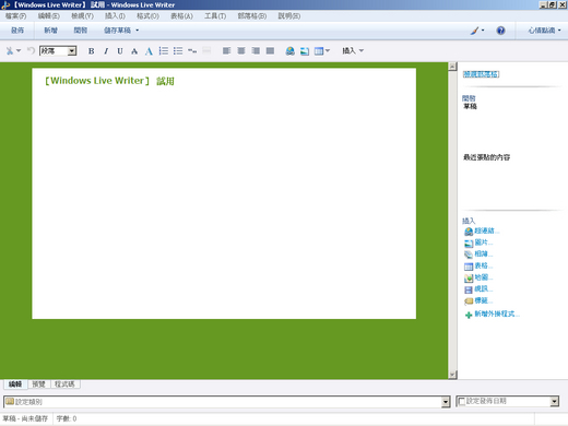 以上是Window Live Writer的介面,看起來是不是很像Microsoft Word?其實它的做法也真的跟Word很像,這是Window所開發出來做為第三方部落格編修的軟體,不需要連上線,就可以直接在這個介面上編寫你想要的部落格形式,不管是文字或是圖片,都像Word一樣的處理方式,因此不太需要訓練,就可以輕易上手,對於經常編寫部落格的人,以及部落格的新手,或是想要美編文章畫面的,都是一個挺棒的參考工具!但是網路城邦不支援喔! 那因為有放圖片,又不想做絕對連結,所以我將做好的簡介說明放在《NANA's teaching》,點上去看看就是囉!