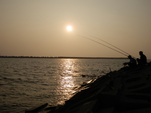 看著海釣的人們,