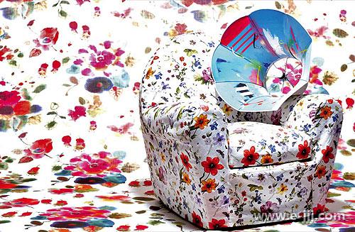 單人沙發Vanity Fair1930是Poltrona Frau企業最為經典的設計之一, 帶有鮮花圖案的面料Housse & Co., 設計靈感來自時裝面料;沙發上安擺放置Karen Ryan設計的...