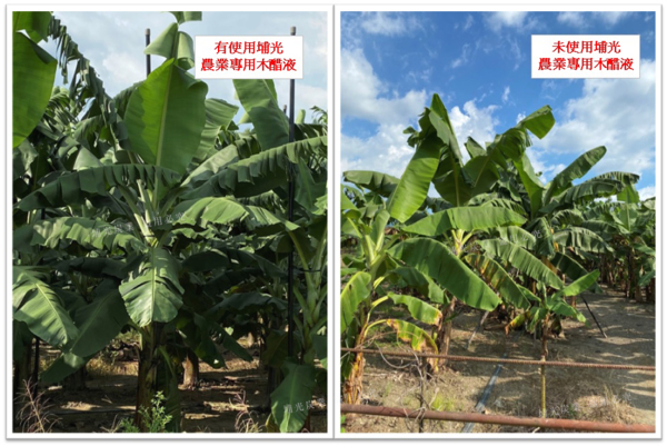 1.香蕉爛根黃葉:以木醋液稀釋150倍水澆灌根部,每10日一次,直到新葉繁盛。 2.樹木黴斑長真菌: 以木醋液原液噴灑或塗抹,每1~2天1次,約4~6次。