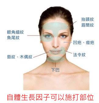 適合部位: 全臉皺紋:抬頭紋、魚尾紋、 皺眉紋、凹疤、痘疤、木偶紋、法令紋等