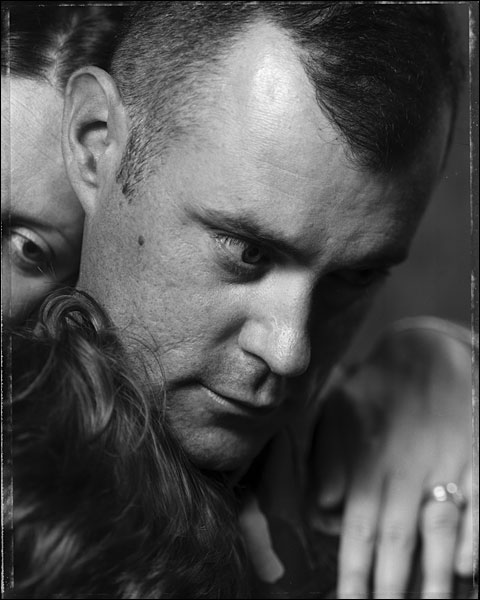 第一系列拍攝的士兵,放在桌上的「頭部特寫」,有違自然的頭像佈置,給人身首異處、死亡聯想。沒有特別背景說明,我們甚至無從知道他們是剛從阿富汗、伊拉克戰場回來的士兵。然而臉部神情眼中世界,訴說心情,我試著想像那景象,無法成形只有滿心驚悚。