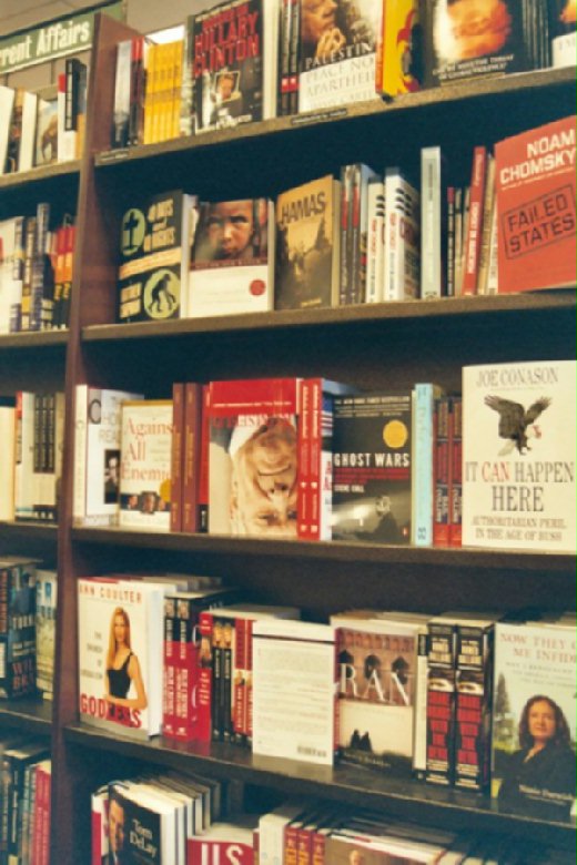 倫斯斐大老爺的政治豐功偉業,以後再說! 不過那書還真是說來有趣。我因為常逛這家書店,跟各區櫃檯有點熟,所以親眼目睹妙事。這本書二月底上架,先是陳列在大桌上。因為書店與Starbucks 合作,書客可在店裡喝咖啡、吃蛋糕,因此這本書上,就常被人放喝完的 Starbucks紙杯、廢紙團,以示抗議。我就聽過巡館店員邊拿開紙杯、邊說「oh not again」。後來書被移到架上陳列(就是我拍照的書架),還是被放空杯抗議。有一天我正好在旁邊找書,巡館店員過來很無奈移開杯子,抱怨說「I guess Rumsfeld really pisses off a whole bunch of people,but I can’t let them put empty cup here cause there is no room on the shelf. 」說的也是。我一時雞婆給個建議,我說「If you stack the books up, then there is no ROOM for any trashes. If you put the book up side down, then the anger gets acknowledged and you are done with this cup thing. 」店員很可愛,就照著做,結果皆大歡喜。一個星期後店員告訴我,沒人再放垃圾抗議,不管多少人翻閱那本書,還總是倒著放回去。後來連Ann Coulter 的書都被人反著放。「書客的」,對你,不爽! 是很有趣的。
