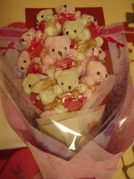 今年的母親節,老爸選了一朵粉紅色的香皂花放在母親的相片前,老爸跟她說:那是她的寶貝女兒做的;回家團圓吃飯時,看著母親的相片,總覺得她的微笑,是在替我高興著;老爸還得意的說:他把我拿回去的花束,拿去送給一些游泳的會員朋友,並祝她們母親節快樂,她們都是滿心歡喜的收下,並誇讚著,看著老爸滔滔不絕的笑著說著,突然覺得,父母的快樂與驕傲,大多來自於子女,縱使只是微薄的心意。