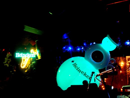 第三張照片則是現場表演前拍的,我將雪人和Helneken的招牌打亮,其他地方調的更暗一點,其實我不太懂攝影也講不出什麼很專業的術語,但我會想去拍出我想要的感覺。