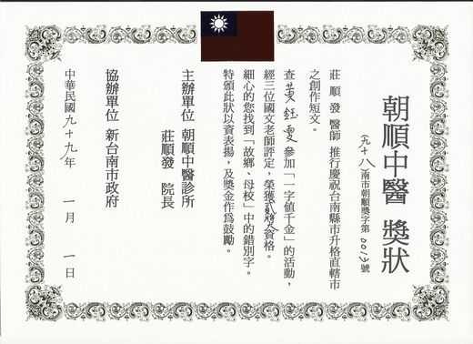 2009一字值千金活動獎狀013 當我們回到故鄉,不只是思念故鄉,更是思念童年往事;當我們回到母校,不只是懷念母校,更是懷念青春歲月。