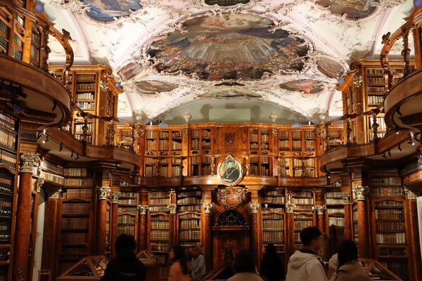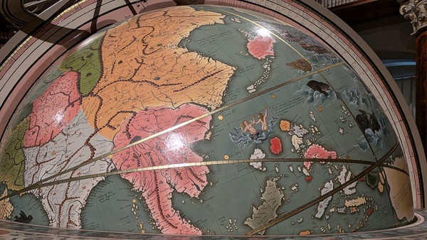 > 修道院圖書館古意盎然,地球儀台灣位置不明