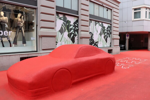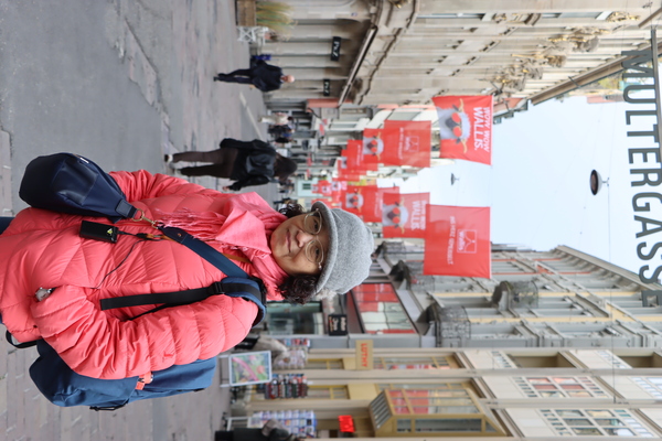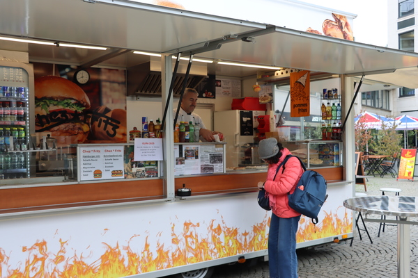 中午的午餐自理,天氣陰涼,找了德式Kepab及香腸填肚子,步行回車站,St.Gallen舊城區即將舉辦農業食品展OLMA,高掛著"Wow wow Wallis"黑面洋的旗幟,St.Gallen也是瑞士的紡織藝術中心,紅色是它的代表色。
