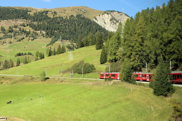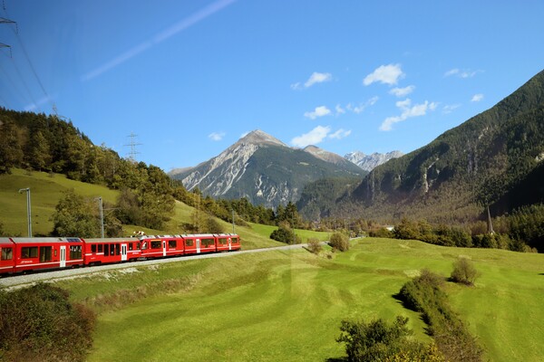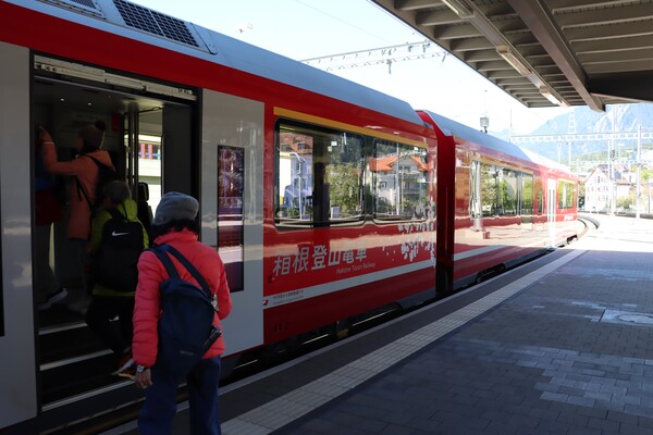> 在Chur 搭上往St.Moritz 的 Bernina Express Abula 支線列車