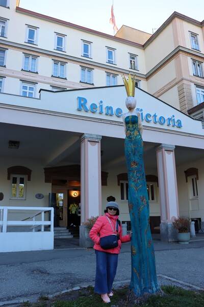 傍晚時刻抵達St.Moritz 聖莫里茲,遇到第一個湖St.Moritzersee,大家都很興奮地拍照,步行到市區,此時是旅遊淡季,此城正在等待下個月開始的滑雪季,這裡曾經舉辦過冬季奧運的! 搭公車到今晚入住城旁邊的Reine Victoria Hotel,先到一旁的Forum Paracelsus 喝個溫泉水,晚餐在飯店,buffet 形式,胃腸一時無法承受這樣的混合!
