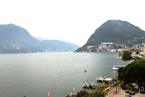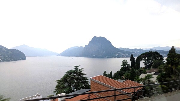> 進入Lago di Lugano 就看到Lugano 標誌性塔門山之右座 Monte San Salvatore