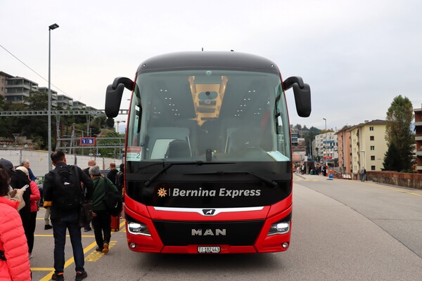 > 類火車的Bernina Express Bus,跟火車一樣的紅色塗裝