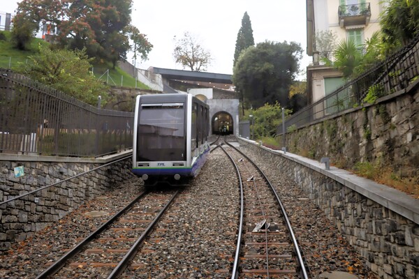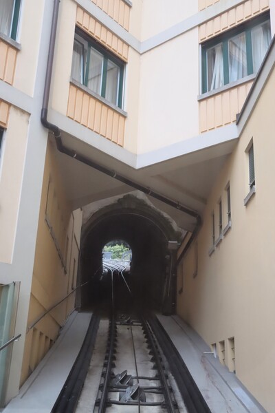 > 抵達Lugano 車站,搭穿越民宅的有軌纜車下到舊市區