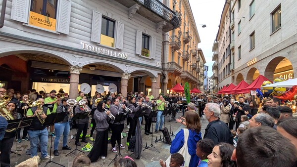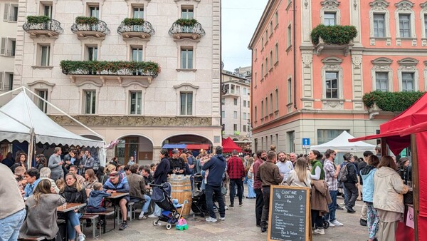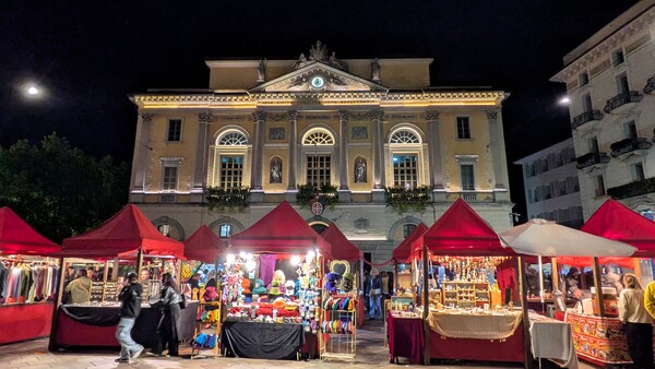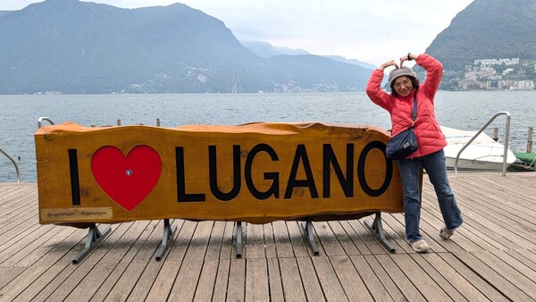 Lugano 魯加諾是屬於瑞士義大利語區,也是義大利境外使用義大利語最大的城市,Bernina Express Bus乖乖地停到位於高處的魯加諾火車站,得搭一段有軌纜車下到舊城區及湖畔,住在湖畔正中央的旅館,景觀奇佳,是日正逢當地的"秋之祭 (Festa dAutunno)",人潮美食滿街、音樂狂歡直到深夜,但這跟中秋節無關(10.6),今晚的晚餐是牛膝加燉飯,餐廳在地下室,有位熱情的瑞士義大利老闆,被譽為此行最好吃的一餐!