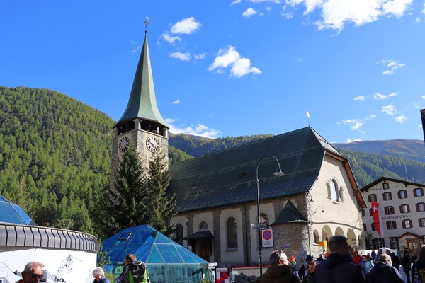 今日午餐自理,在Coop買了辛拉麵回飯店熱肚子,下午的自費行程要上更高的冰河玄宮就跳過,登馬特洪而小天下,三千公尺以上先免了! 下午就到策馬特一條街逛逛,這條街滿滿的觀光客,以賣手錶、運動禦寒衣物、香水紀念品為主,街尾有"Matterhorn Museum",是地面玻璃天窗的地下室博物館,展示攀登馬特峰的血淚歷史,博物館一旁的Pfarrkirche St. Mauritius天主教堂就有當年首攀馬特峰成功後卻遇山難者的墓園,這山令人敬畏!