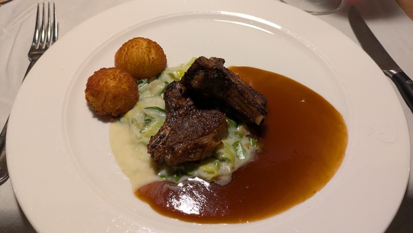 今日晚餐是烤黑面羊小排,聽說是飯店老闆自家養的,真好吃,先給兩小塊,然後很慷慨的巡場添加一塊,團員戲說標準餐就是三塊羊排,來這套! 哎呀,別壞了店家的心意。