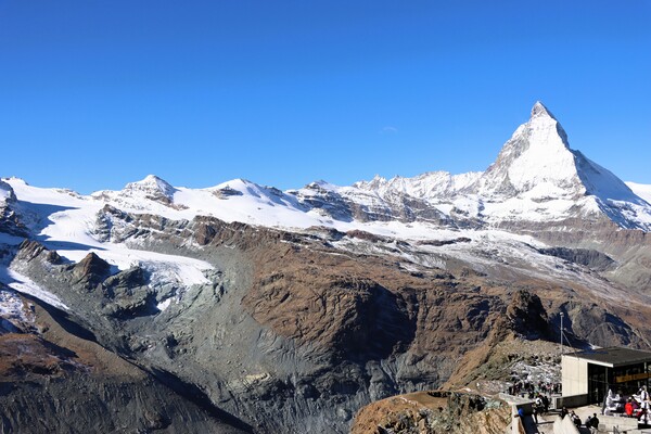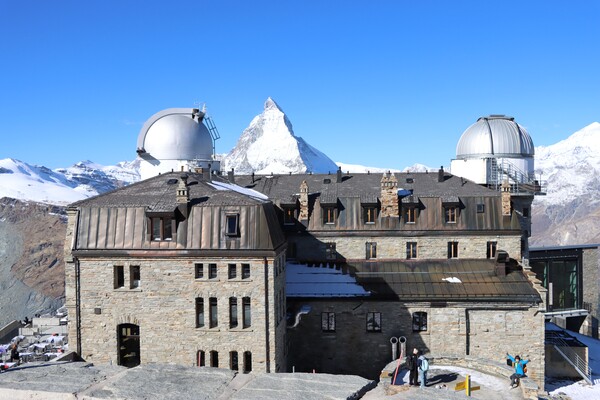 最後抵達Gornergrat車站(3,089m),此地算是開闊,設施完善,有觀景台可以看Gorner冰河,可以眺望周遭的各大高山峻嶺,也有天文台、餐廳、紀念品店、劇院等設施,很多觀光客,台客是大宗,其次是韓國,強國人以散客為主。