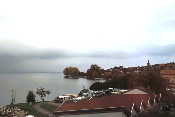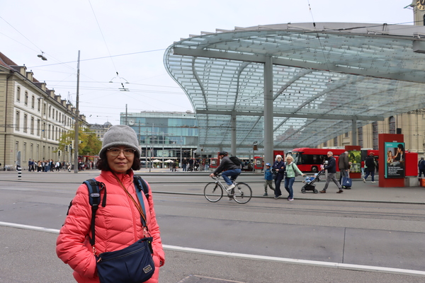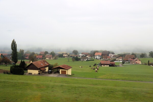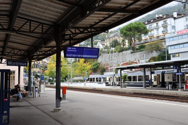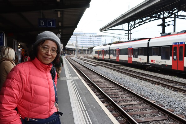 沒能在Montreux多停留跟Lugano一樣可惜,大家紛紛早起在湖畔景觀旅館的露臺上欣賞湖光山色,今日天氣略帶陰沉,車站就在旅館對面,停靠著一列古典的Golden-Pass Express,可惜我們還是搭乘SBB CFF FFS瑞士國鐵雙層白色的豪華列車,沿著湖畔到洛桑(Laussanne)轉車到伯恩,又錯過一個美麗的城市: 洛桑,進入高原山區,雲霧壟罩著山頂,景色顯得迷茫。