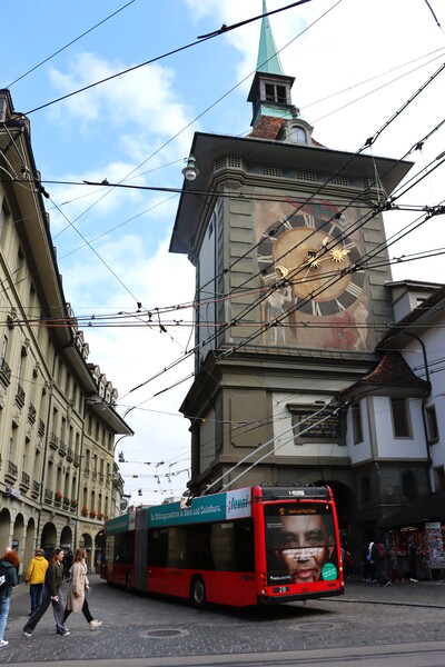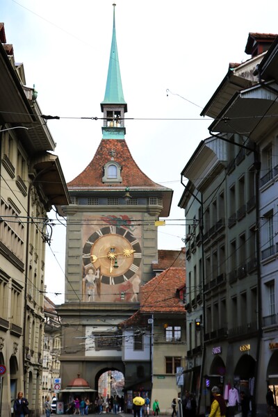 市中心區仍是一座大教堂 (Berner Munster),哥德式的高大建築。城區有兩處鐘塔,一座是跟布拉格拚比的天文時鐘塔,逢整點會有小人轉出來提點,但沒布拉格天文鐘那麼盛大。另一座是獄塔,顧名思義是監獄,規模不大。