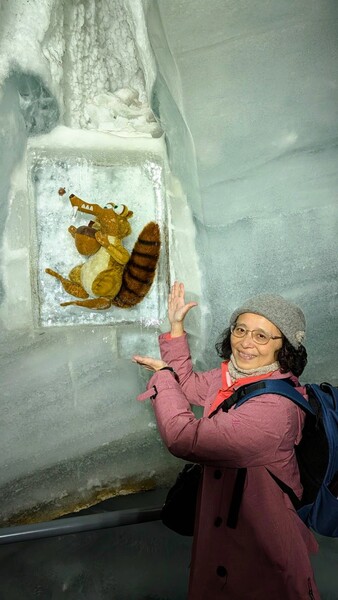 > 冰宮裡的冰雕、紀念品店買明信片寄郵筒(至11.6仍未收到)、雞腿午餐(像是給台灣客的標準午餐)