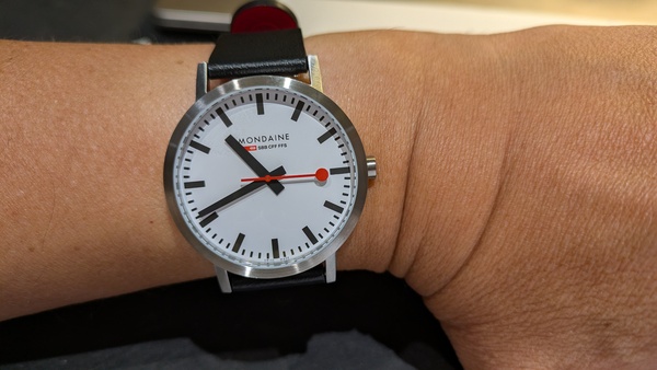 最後的午餐仍是自理,吃了一頓很隨意的中式快餐,還是得補上好吃的德國香腸才行,然後到 Coop 買齊等路,搭上豪華的SBB CFF FFS 列車經Zurich 到機場,行李也在此時送達,打包完後,搭Swiss Air 經香港回台北,為對優質的瑞士鐵路表示敬意,在瑞航上買了一支Modaine 的SFF CFF FFS 錶當紀念,可惜不是 Stop-2-Go,也夠令人見物思景的了!