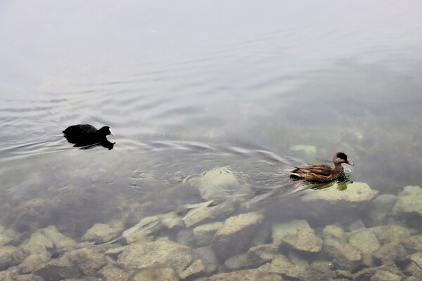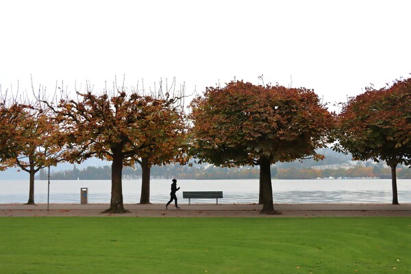 > 悠閒陰沉的清早湖畔風光