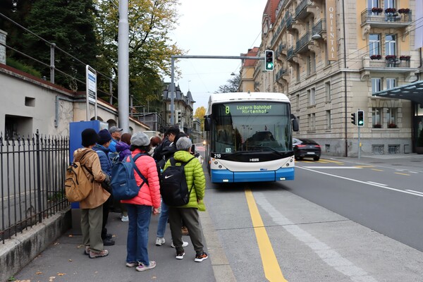 > 還得步行一段路才到街邊搭乘公車回盧森市中心