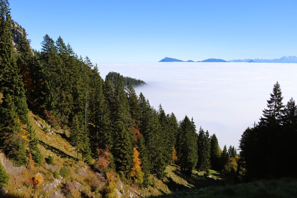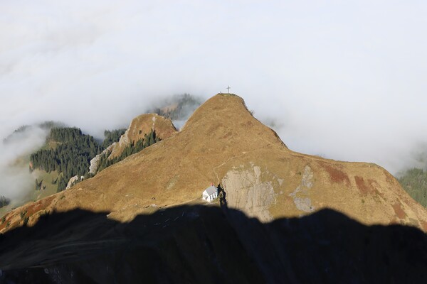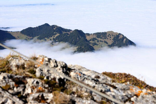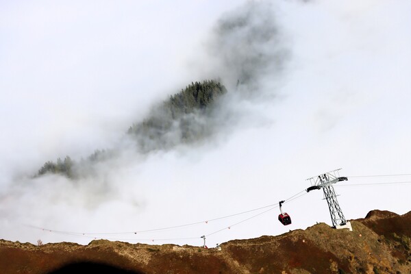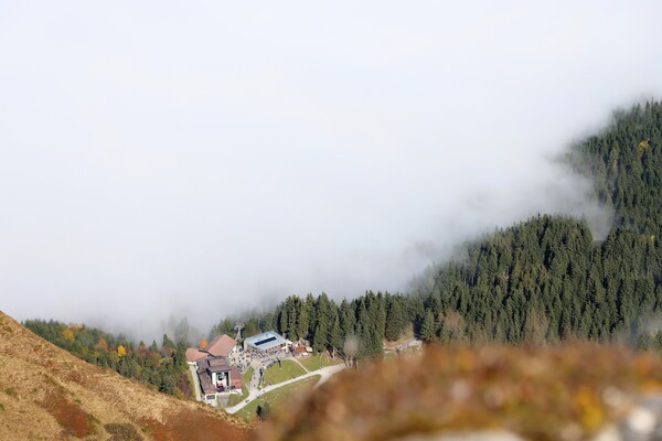 > Fräkmüntegg 中繼站短暫的出現在雲海中
