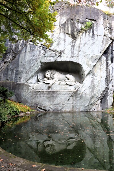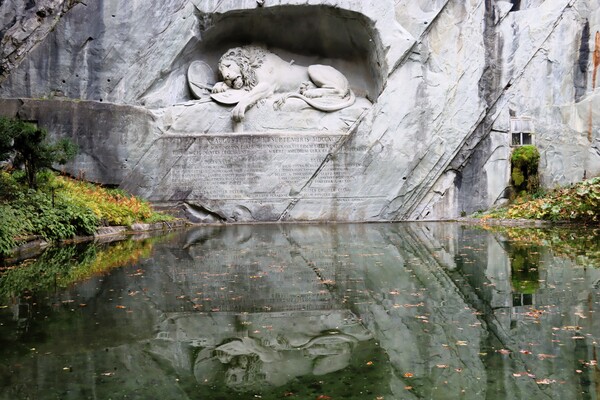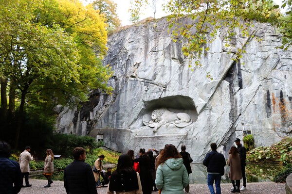 先到盧森地標景觀之一的"垂死獅子像 Löwendenkmal",這是紀念在1792年戰爭中為法國犧牲的瑞士戰士,丹麥雕塑家巴特爾·托瓦爾森,完成於1821年,被馬克吐溫譽為"世界上最令人悲傷和感動的石像",因而更有名。