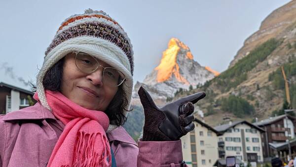 Day 7 (10.7) Zermatt, Martigny, Chamonix (2x 鐵道列車,1x 遊覽車) 紅黃綠三色組成了秋天的顏色,搭配上白頭的山,真是美麗如畫的風景,照片看起來還真的像畫...