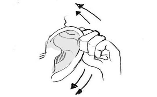 以食指或拇指分別捏住耳廓的內層和外層,部分高低凹凸,相對揉捏。
